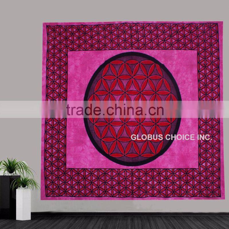 This Tapestries are completely screen printed in traditional Indian method and takes around a week to complete. 100% Cotton - This tapestries are printed, not quilted or woven. They are hippie Indian tapestries. Thin as sheet. Good, tight power loom construction. Hemmed edges. Each tapestry has its unique imperfections. In some cases what printers would call registration errors are intentionally included on the screen print to simulate hand woodblock prints.