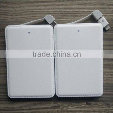 Premium leather cover customized promotional credit card shape portable phone power bank charger with built in micro usb cable