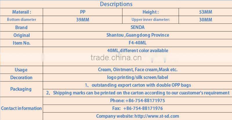 40ml plastic jars for creams, plastic pharmaceutical container, pp cream jar