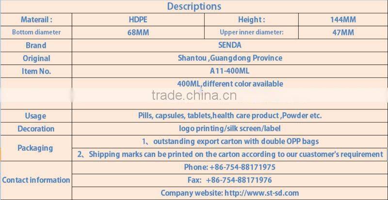 400ML Wide Mouth Bottle With Screw Cap/empty Plastic Capsule Container