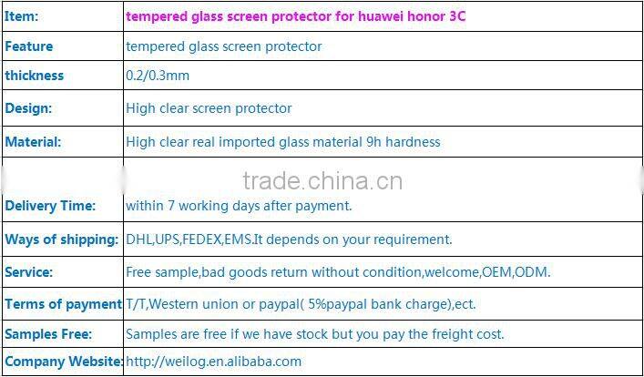 Best 9H screen protector for huawei honor 3c new hot products China wholesale