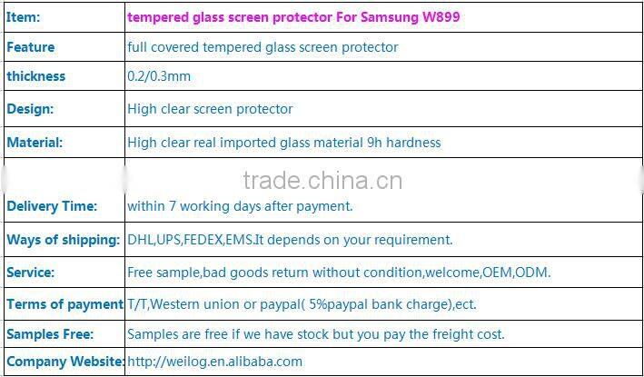 Anit-broken anti-scratch for Samsung W899 tempered glass screen protector original unlocked, for Samsung W899 glass protector