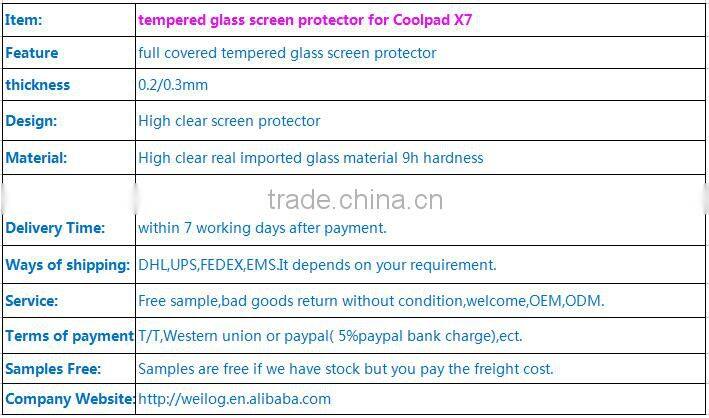 Top quality 9H 2.5D Tempered glass screen protector for Coolpad X7, Paypal also accepted