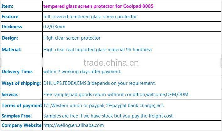 Tempered Glass Screen Protector For Coolpad 8085 Anti-Explosion 9H 0.33mm For Coolpad 8085