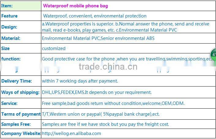 2016 New Design Available Eco-friendly Pvc Mobile Phone Waterproof Bag