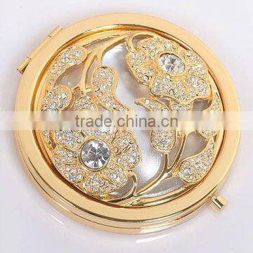 Metal Pocket Antique Cosmetic Mirror With Diamond