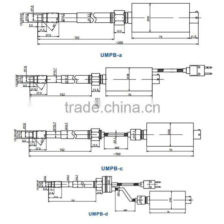 BBZ-UMPB series melt pressure transmitters are developed from strain gauge technology. The BBZ-UMPB are constructed with a full bridge strain gauge circuit and 100% made from stainless steel material. In addition, the pressure diaphragm features a surface treatment with special alloy coating for all the BBZ-UMPB models. Both the rigid stem and flexible extension provide thermal isolation to BBZ-UMPB’s electronic circuitry, which enable BBZ-UMPB suitable for melt pressure and melt temperature measurements.