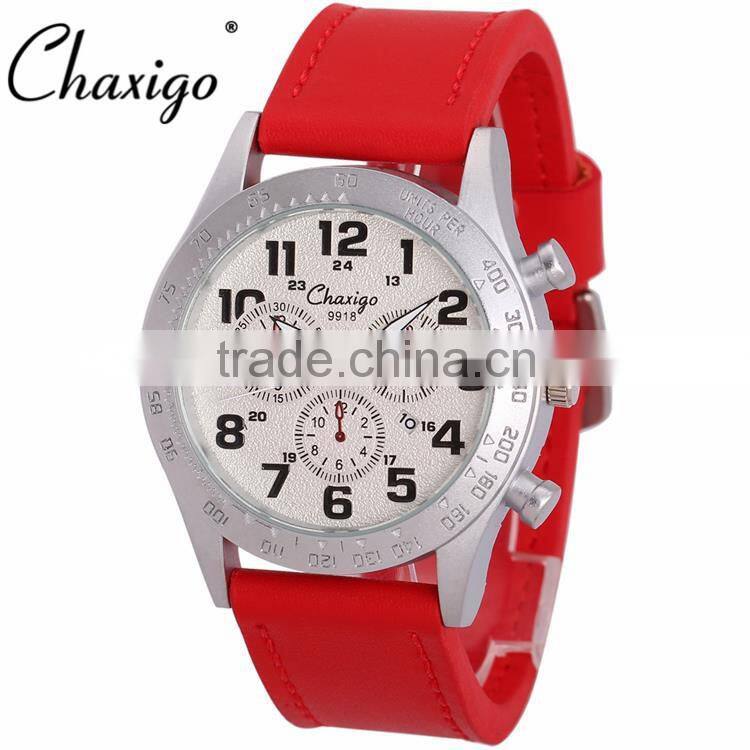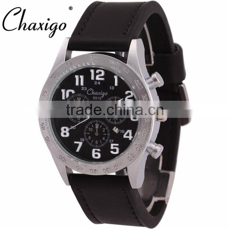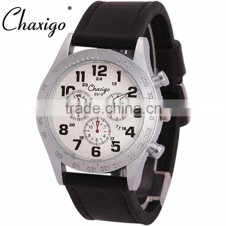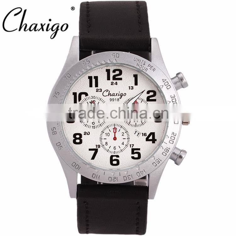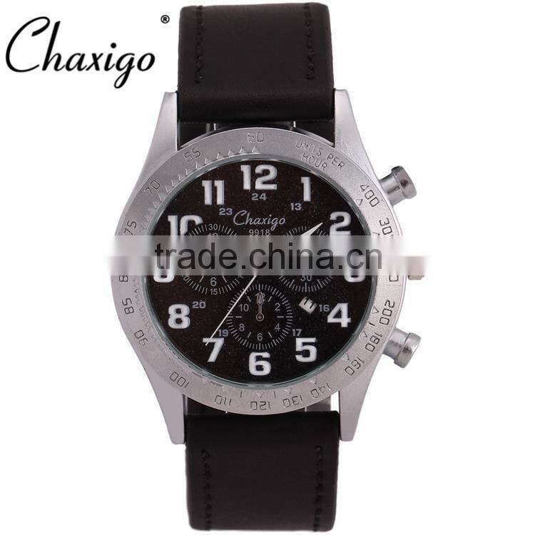 Chaxigo Factory Wholesale Sport Leather Three Eyes Fashion Design Men Chronograph Watch