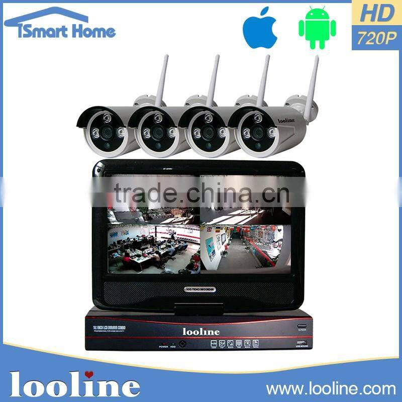 Looline New Product 4 Channel Plug And Play 720P IR Bullet Cameras WIFI Wireless NVR System Home