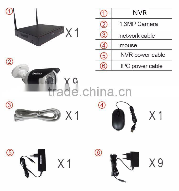 Home > Products > 4.Enhanced NVR Kits > Looline Stable Transmission 9CH NVR Kit Enhanced Wifi Module 960P Cheap Cctv Camera Kit
