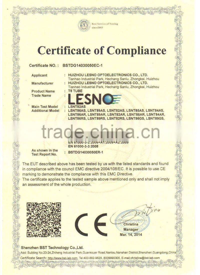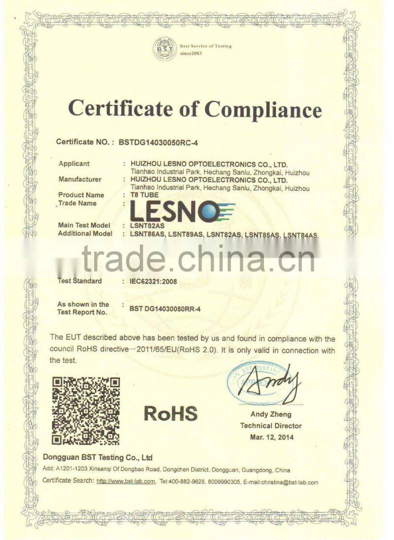 Huizhou LESNO Optoelectronic CO.,LTD was found in 2008, specialize in LED lighting design and manufacture, main products include T5,T8 LED tube lights,LED bulb lights,LED panel lights, LED flood lights etc.
