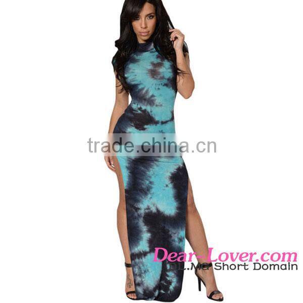 2016 Sexy Modern Wholesale Tie Dye Vintage Short Sleeve Cheongsam Dress