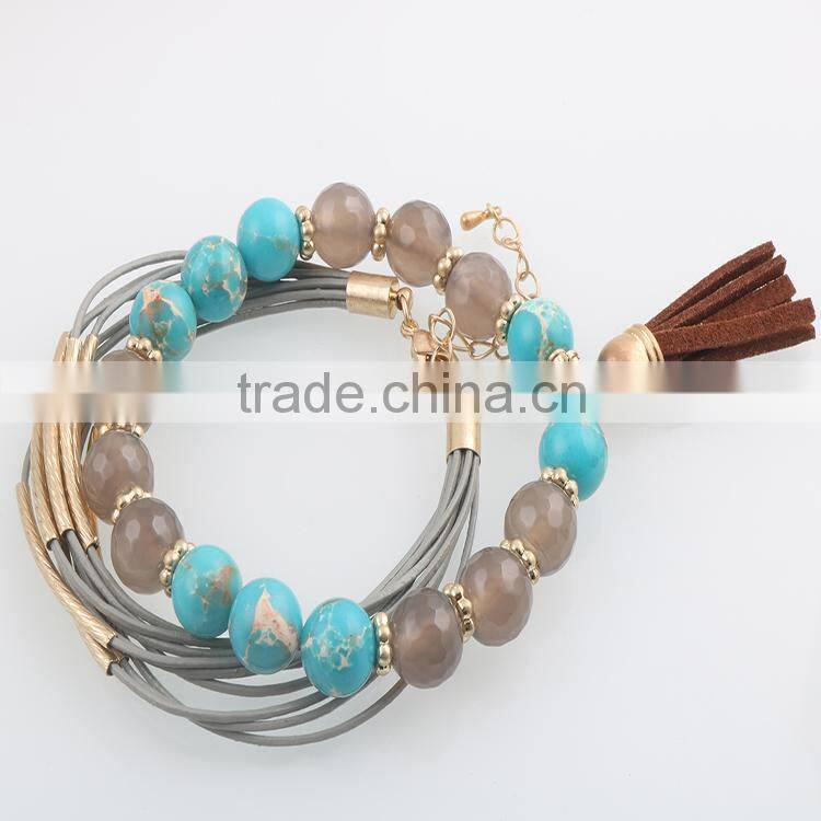 G69814K02 STYLE PLUS Top Retailer Hot Sale Women's Jewelry Pretty Bracelet Series Druzy Multiple Stone Leather Style Bracelet