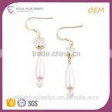 E77951I01 Pearl Gold Plated Long Earring Designs Gold Earring Backs Crystal Water Drop Pearl Pendant Earrings