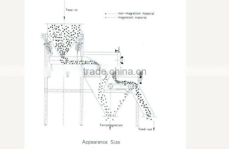 With the soft magnetic material to transmit magnetic force and the computerized simulating design for the magnetic roller and disk, the loss of magnetic field is reduced remarkably with the added no class changes vibrating device, To achieve the best eliminating efficiency, we use the frequency-change and unique weighing sensing technology to keep the material in the required date, Additionally, we used the magnetized disk with strong magnetic field before iron-elimination. As material passes disk, the weak magnetic material is magnetized.