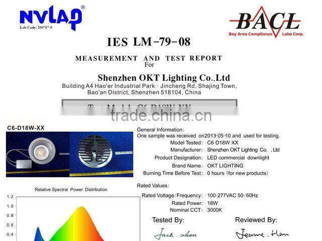 This OKT UL Energy star Commercial LED Recessed Retrofit Downlight was tested with no seasoning which made in compliance with IES LM-79-08.