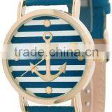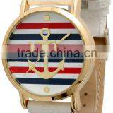 2015Wholesale Cheap Classic Color PU Leather Strap Stripe Anchor Dial Mechanical Vogue Watch in Stock!
