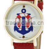2015Wholesale Cheap Classic Multi Color Leather Strap Gold Trim Nautical Anchor Dial Mechanical Vogue Watch