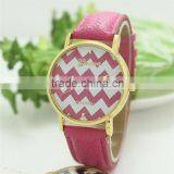 Classic Wholesale Green Pu Leather Strap Stripe Wave Pattern Chevron Mechanical Wrist Watch in Stock!