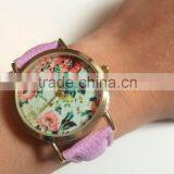 2015Wholesale Cheap Classic Multi Color Leather Strap Flower Floral Dial Mechanical Vogue Watch