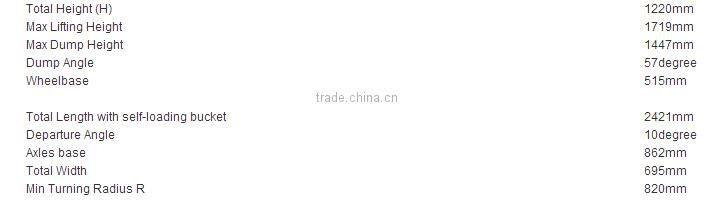 b. 1447mm ultrahigh dumping height can transport various materials to the truck