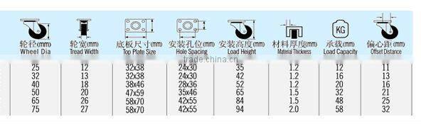 Name: 50mm Small swivel plate furniture rubber wheels