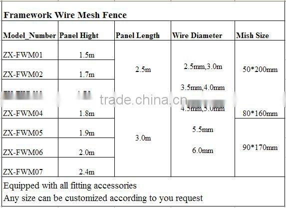 Framework fence is also known as border style anti-climbing welding mesh or grid frame. It is a Assembly flexible products, which was widely used in highway, railway and road etc. With different Types of posts, can be conveniently used as permanent web as well as temporary isolation netting.