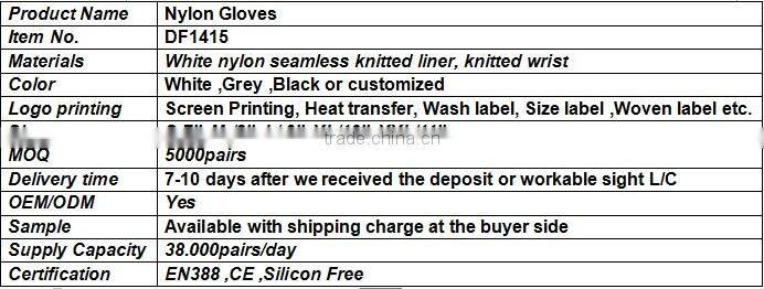 2014 Hot Selling Nantong Factory Industry Wear Work White Nylon Gloves