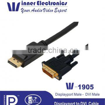 The Cable Matters Gold-Plated DisplayPort to DVI cable is an indispensable companion for your laptop or desktop equipped with DisplayPort. Extend your desktop to a second monitor (1920x1200 or 1080p) for an expanded workstation, or show presentations on a projector at school or work with this cable. The combination of gold-plated connectors, bare copper conductors, and foil & braid shielding provides superior cable performance and guarantees exceptional picture quality.