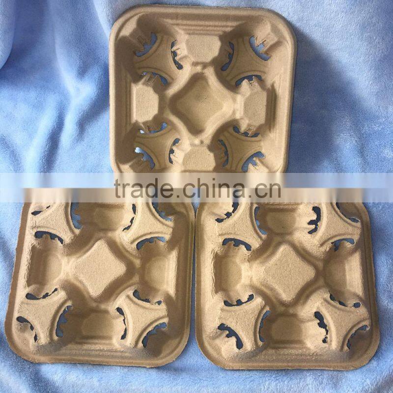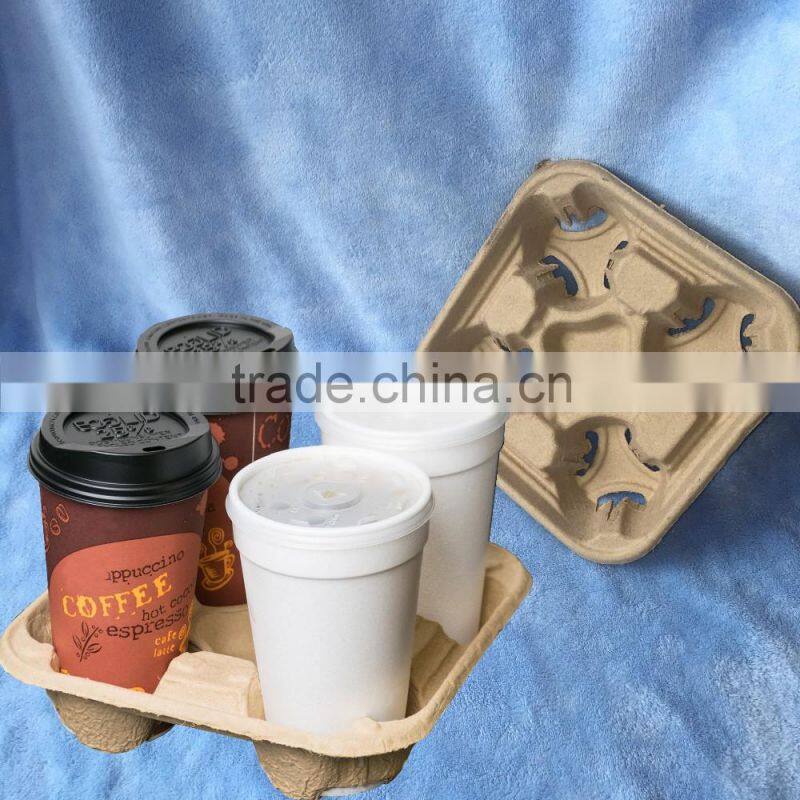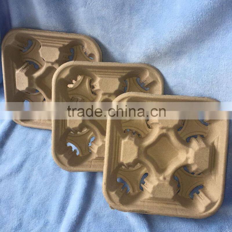 Biodegradable Molded Pulp 4 Cups Coffee Carrier Tray