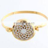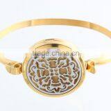 Fashion Round Gold And Silver Lotus Flower Aromatherapy Essential Oils Diffuser Locket Bangle Bracelet