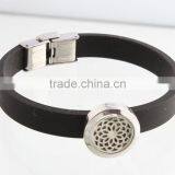 2016 New Round Silver Lotus Flower With Silicone Band Aromatherapy Essential Oils Diffuser Locket Bangle Bracelet