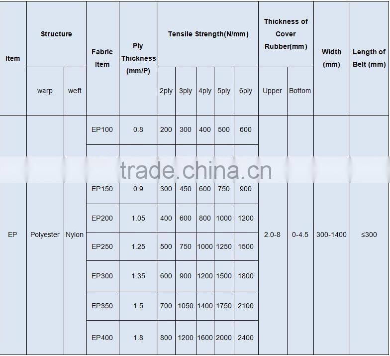 Base Belt: Multi-ply (EP/NN/CC) type and Steel Cord type