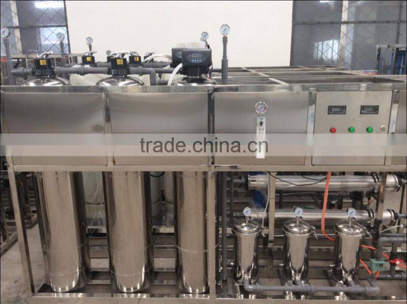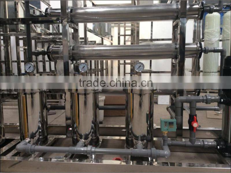 * Sodium, calcium, magnesium, and other little microelement will be filtered in the third tank by resin inner. Water after treating flow through three smaller filters into RO membrane reverse osmosis system.