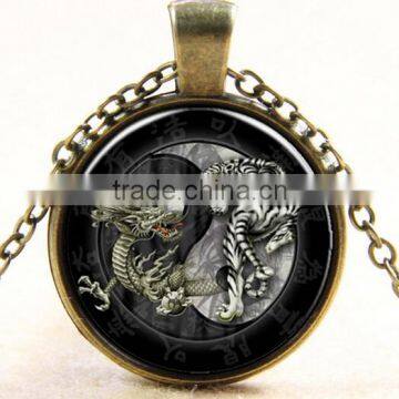 Popular Ying-Yang dragon and tiger fighting DIY glass dome necklace photo glass jewelry handmade jewelry Comic DIY Jewelry