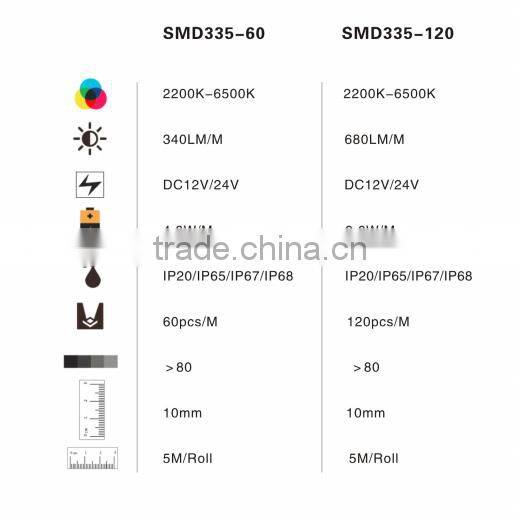 New Product Good Quality LED Strip Light 335 Side View LED Strip Light 60 Pcs/m DC24V 3 Years Warranty