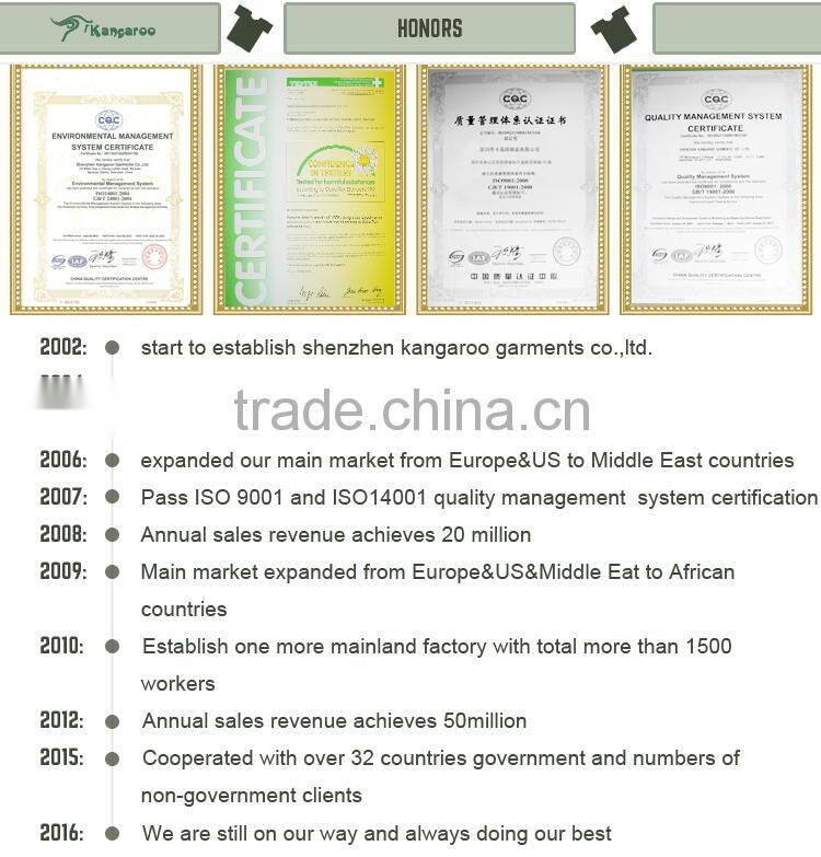 Shenzhen Kangaroo Garments Co., Ltd is a professional uniforms and equipments manufacturer for