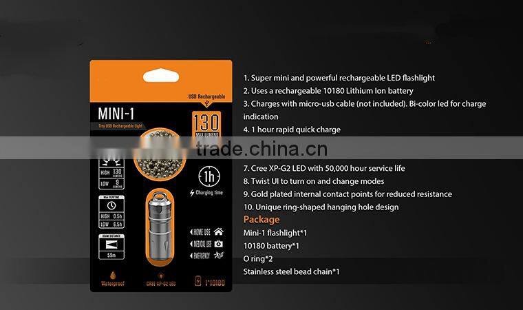 | Stainless Steel Super Light Powerful Waterpfoof Rechargeable Mini LED Flashlight With 10180 Lithiumlon Battery |