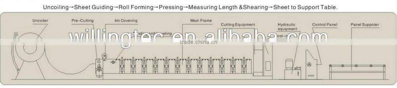 Roll forming system The main frame of machine is welded separately and the outside wall is connected by screw after being rotoblasted on the surface.The rollers are surface-chromeplated after being machined by the exact machine tool.