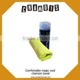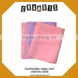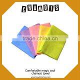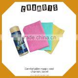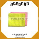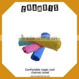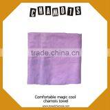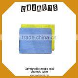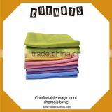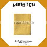Custom shammy towel has been widely used as sports cooling towel. take it during a work , bike rides, golfing, or other outdoor activity, it is really keeps ypur cool. When wet, the towel becomes considerably cooler than the outside air, which provides cooling effect to the user. Keep it, just like take your own air-condition with you. When it stops cooling, just simply re-wet the towel in any water and wring it out. Within minutes it is cool again. Also, it is awesome for Cleaning and drying. use it as a cleaning towel, cleanng without water spots and dustless. use it as a drying towel, it feels like a cloth absorb like a sponge. use it, just enjoy the cleaning with us. it is really good helper to our daily life.