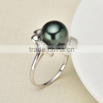 high luster 8-9mm black pearl ring designs for wholesale