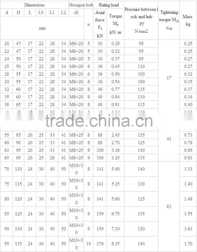 Locking assembly with single taper design.It is suitable for high torques.Provide good concentricity and self centering.A small axial movement of hub during the installation operation may occur.