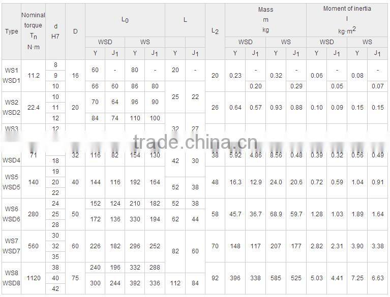 WSD universal coupling is suitable for retating system which the two axis angle <45,nominal torque 11.2~1120N*m.