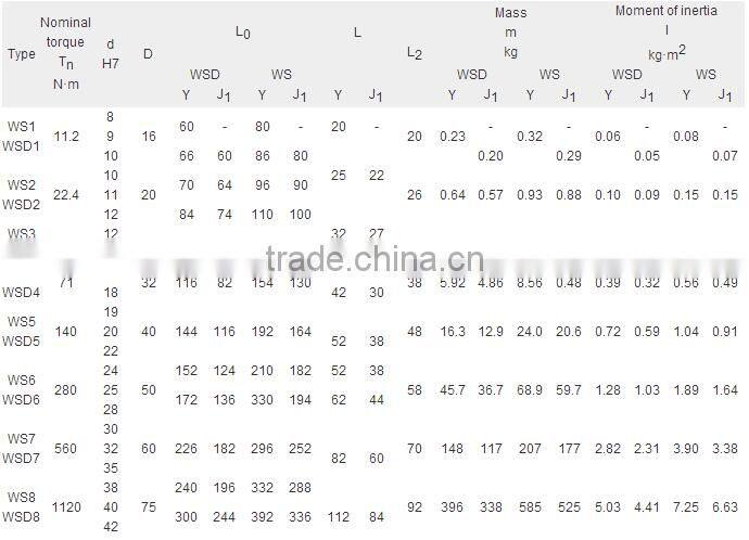 WSD universal coupling is suitable for retating system which the two axis angle <45,nominal torque 11.2~1120N*m.