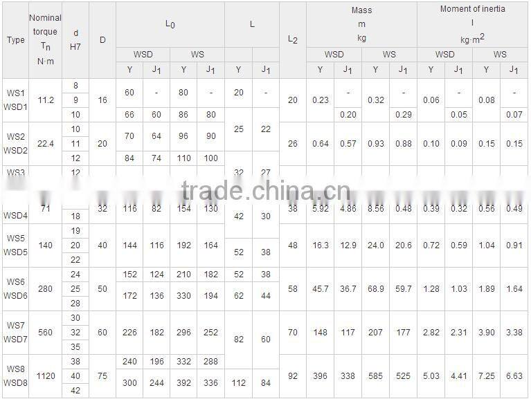 WS universal coupling is suitable for retating system which the two axis angle <45,nominal torque 11.2~1120N*m.