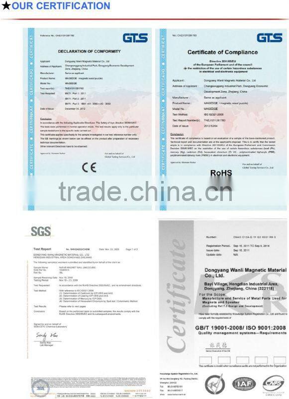 Dongyang Wanli Magnetic Material co., Ltd, we are specializing in producing high quality NdFeb magnet and magnetic products as education toys, we also have own plastic injection and Hardware workshop for lamp’s plastic parts and speaker metal parts.