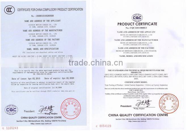 We obtained the certificate of ISO9001 and BV, and Cables must met the standards of China Compulsory Certification(CCC).