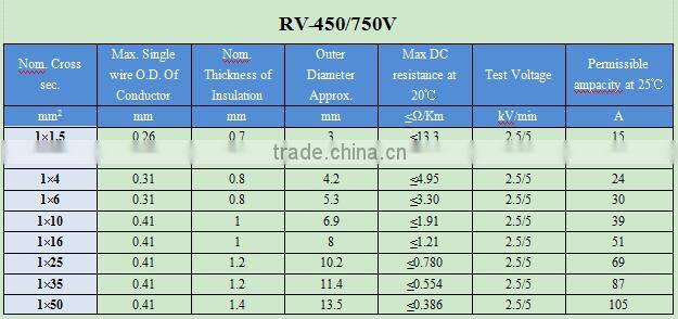 RV 450/750V Copper Conductor PVC Insulated Flexible electric wire