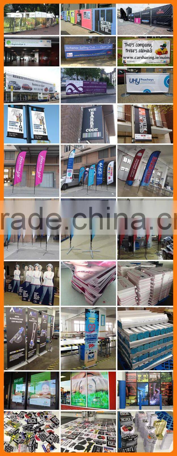 Relate products : car sticker, custom vinyl, Decals, flag pole,floor stickers,flying banner, Pop Up Display, pvc banner, UV, wall sticker, Window sticker,PVC Foam Board---outdoor/indoor banner,street banner,mesh banner(vinyl banner,polyester banner,beach banner(teardrop banner,feather flag),fabric flag and banner,posters,PVC foam boad,stickers and decal,window sticker,vehicle wrap.glow in dark sticker,rollup banner stand,table cover ect .