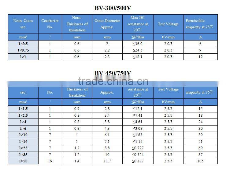 factory supply BV 10mm insulated single core electrical wiring for lighting wire